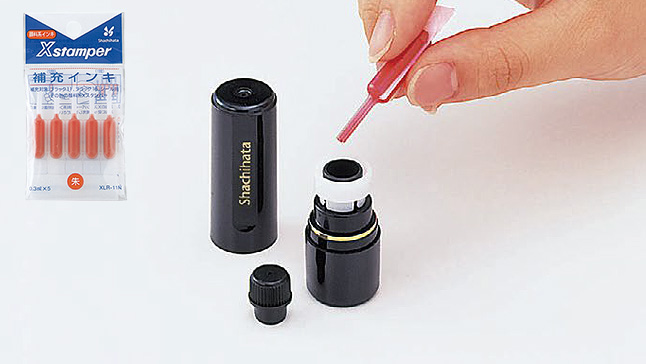ホルダーとインキ補充口キャップを外して、補充口から中のインキ吸蔵体にインキが吸い込まれるのを確認しながら、ゆっくりと補充してください。
